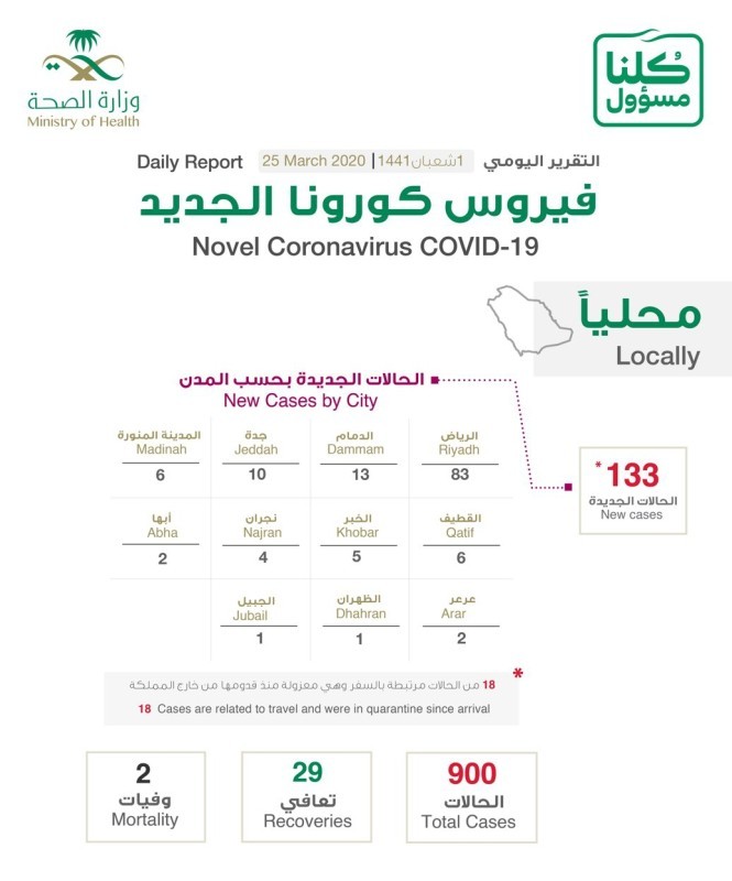 التقرير اليومي لفيروس كورونا الجديد Ministry Of Health وزارة الصحة السعودية Facebook