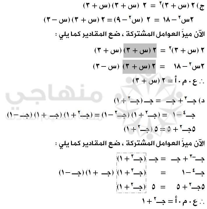 الرياضيات ايجاد العامل المشترك الاكبر والمضاعف المشترك الاصغر رياضيات الثالث المتوسط