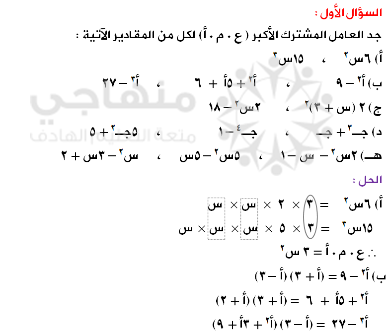 الرياضيات ايجاد العامل المشترك الاكبر والمضاعف المشترك الاصغر رياضيات الثالث المتوسط