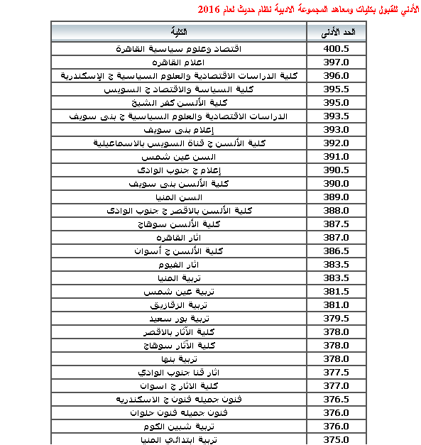 الحدود الدنيا للكليات والمعاهد فى تنسيق المرحلة الثالثة أدبى 2018 2019